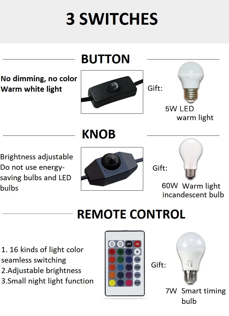 • Base type: E27( Included)