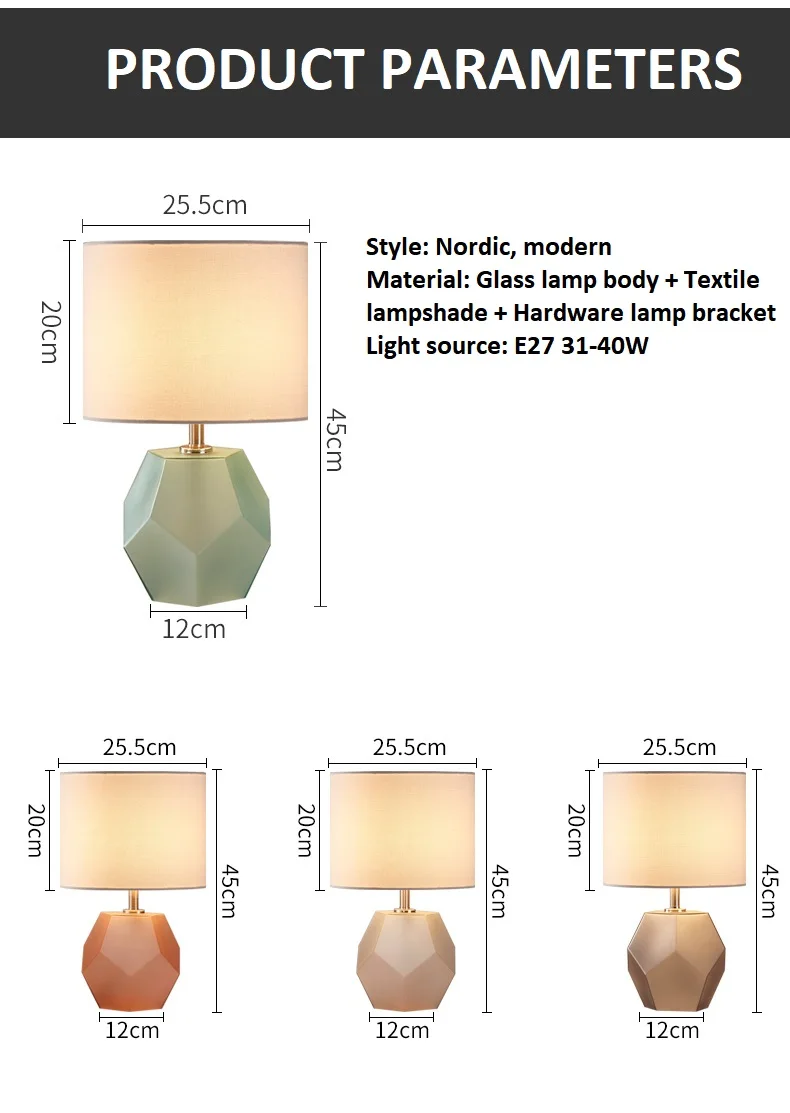 • Made from premium glass stone, high-quality textile lampshade, and hardware lamp bracket.